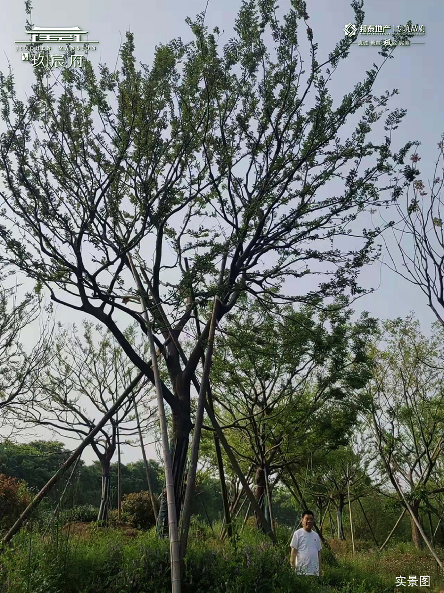 邦泰·玖宸府的12株丛生朴树,冠幅超过450-500cm。