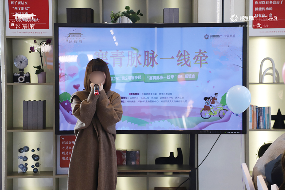 3月8日,由共青团寒亭区委、寒亭区教体局主办的【寒亭区”寒青脉脉一线牵“联谊会】在邦泰·玖宸府营销中心浪漫开启。来自潍柴集团、寒亭人民医院等单位的男女嘉宾,相聚玖宸府,共赴甜蜜之约。